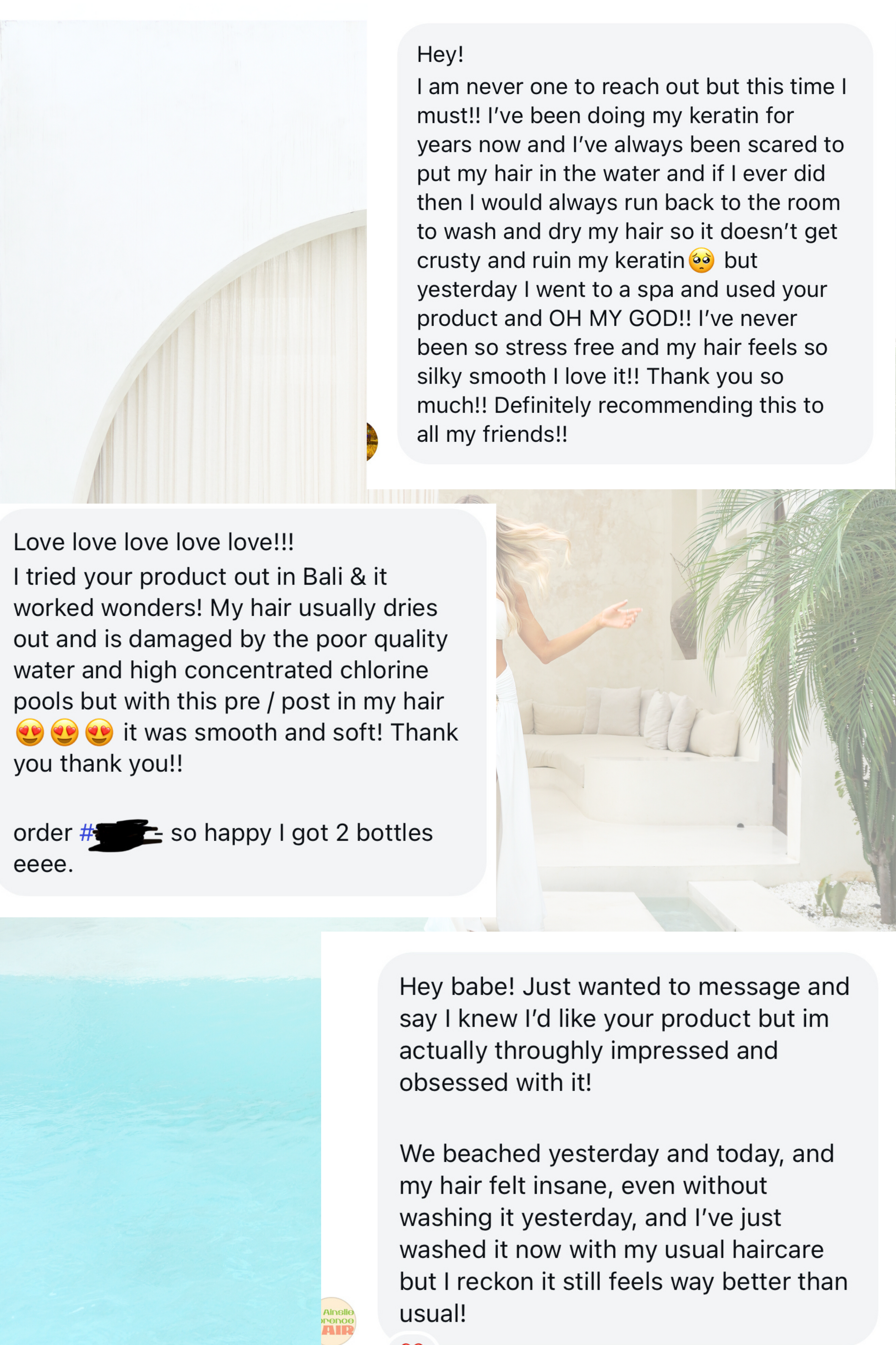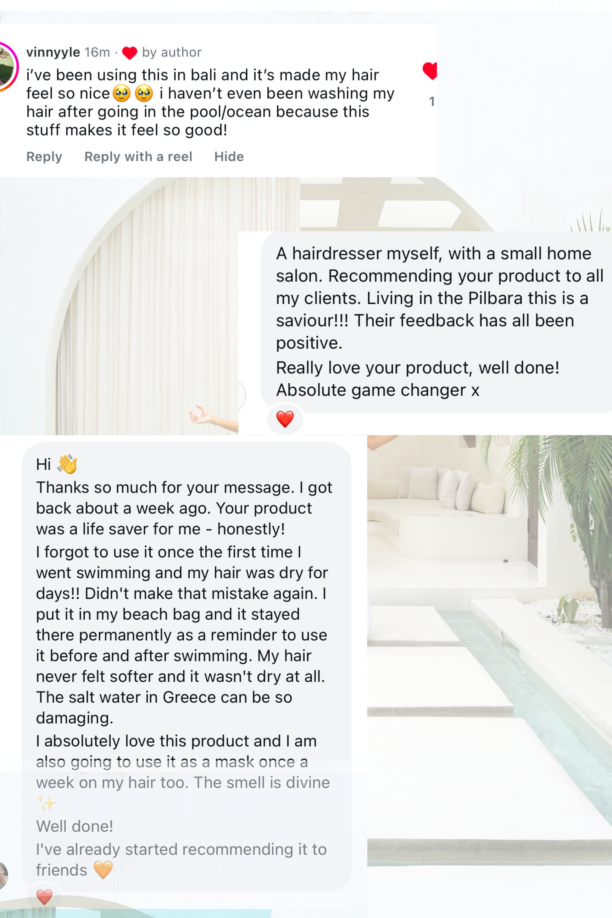 Pre-Swim works like an invisible swim cap, coating each strand in a weightless, silky barrier that locks in moisture and shields your hair from external stressors. It helps prevent the harsh effects of saltwater, chlorine, and UV rays — the kind of damage that causes dryness, brittleness, colour fade, and split ends. Think of it as your hair’s first line of defence before diving into the pool, ocean, or sun.