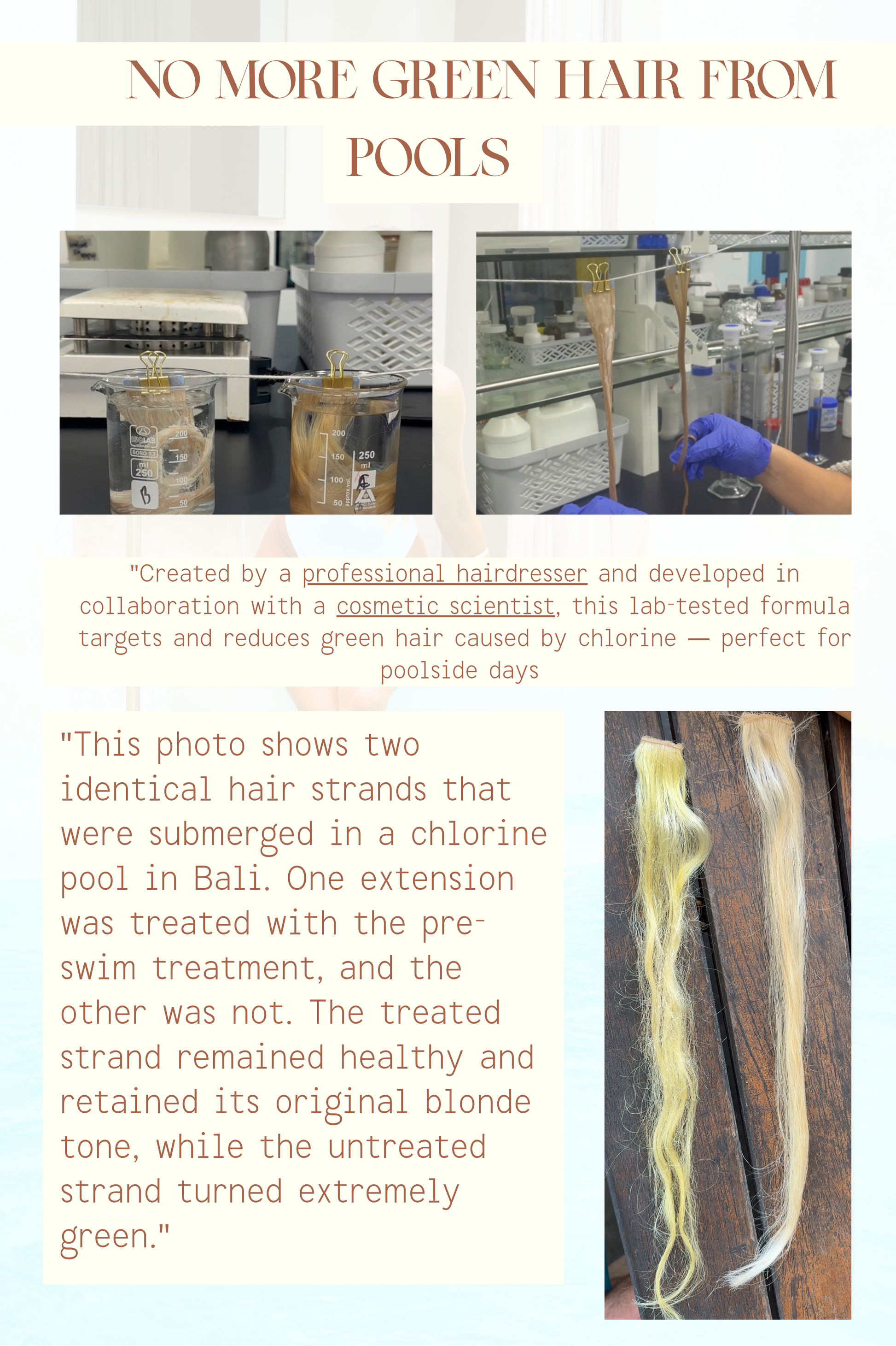 Absolutely. Pre-Swim was formulated by a cosmetic scientist and created by a hairdresser — the perfect duo. It’s designed to be gentle, effective, and completely safe for colour-treated hair.